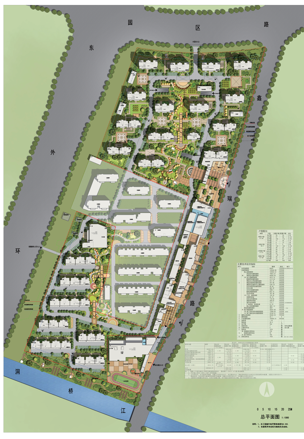 - 項目描述:本地塊容積率為1.33,建筑密度為22.17%,綠地率30%。整個工程由15棟9-18層的高層住宅、7棟6層的多層住宅、幼兒園、文化禮堂、配套用房及一層地下室組成。