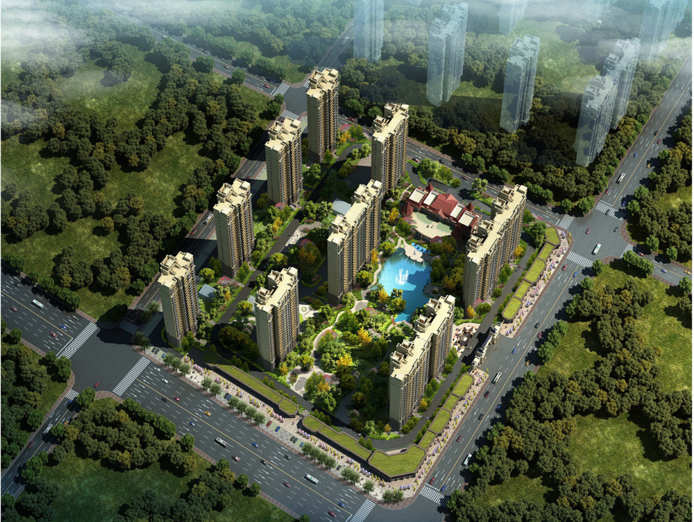 - 項(xiàng)目描述:上體內(nèi)總體呈”一心兩軸“的構(gòu)架,包含9幢住宅建筑和一幢綜合樓。